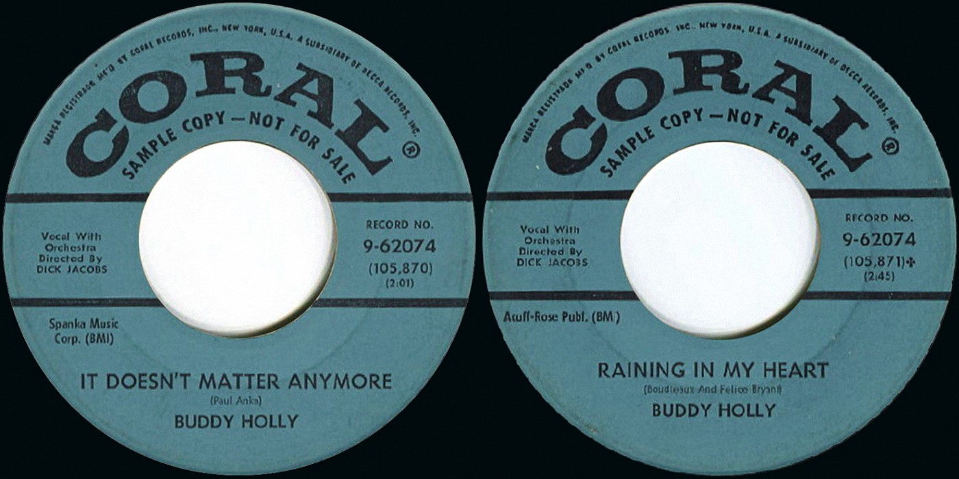- It Doesn't Matter Anymore / Raining In My Heart - (5 January 1959 CORAL 9-62074 US) click here for picture of demo copy