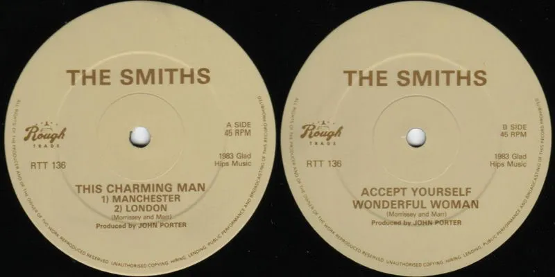 28th October 1983 Rough Trade RTT-136 This Charming Man (Manchester) // This Charming Man (London) b/w
