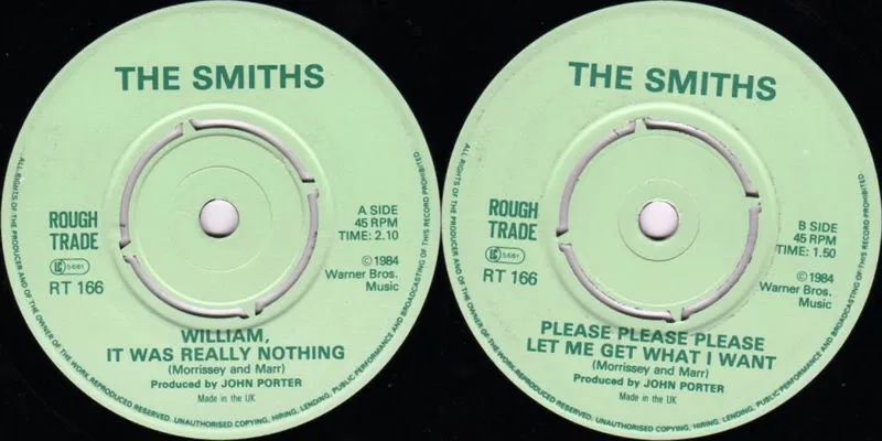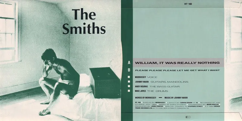 24th August 1984 Rough Trade RTT-166 William, It Was Really Nothing b/w How Soon Is Now // Please Please Please Let Me Get What I Want 12" single UK |
