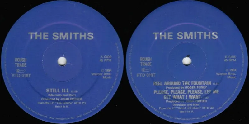 Nov. 1984 Rough Trade RTD-018T Still Ill b/w Reel Around the Fountain // Please, Please, Please Let Me Get What I Want 12" single Germany |