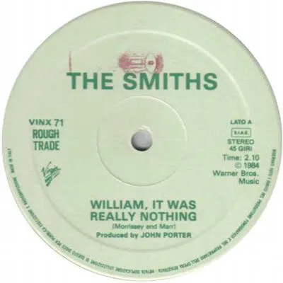1984 Virgin VINX-71 William, It Was Really Nothing b/w How Soon Is Now // Please, Please, Please Let Me Get What I Want 12" single Italy |