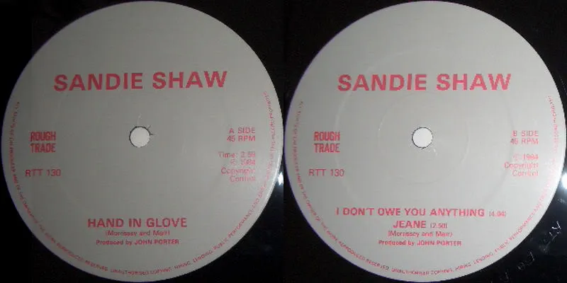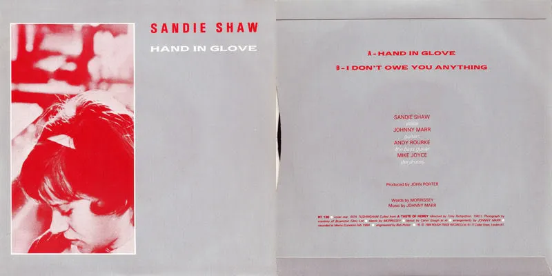 9th April 1984 Rough Trade RTT-130 Hand In Glove b/w I Don't Owe You Anything // Jeane 12" single UK |