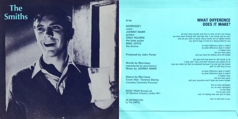 20th Jan. 1984 Rough Trade RTT-146 What Difference Does It Make b/w Back to the Old House // These Things Take Time 12" single UK Terence Stamp front cover |